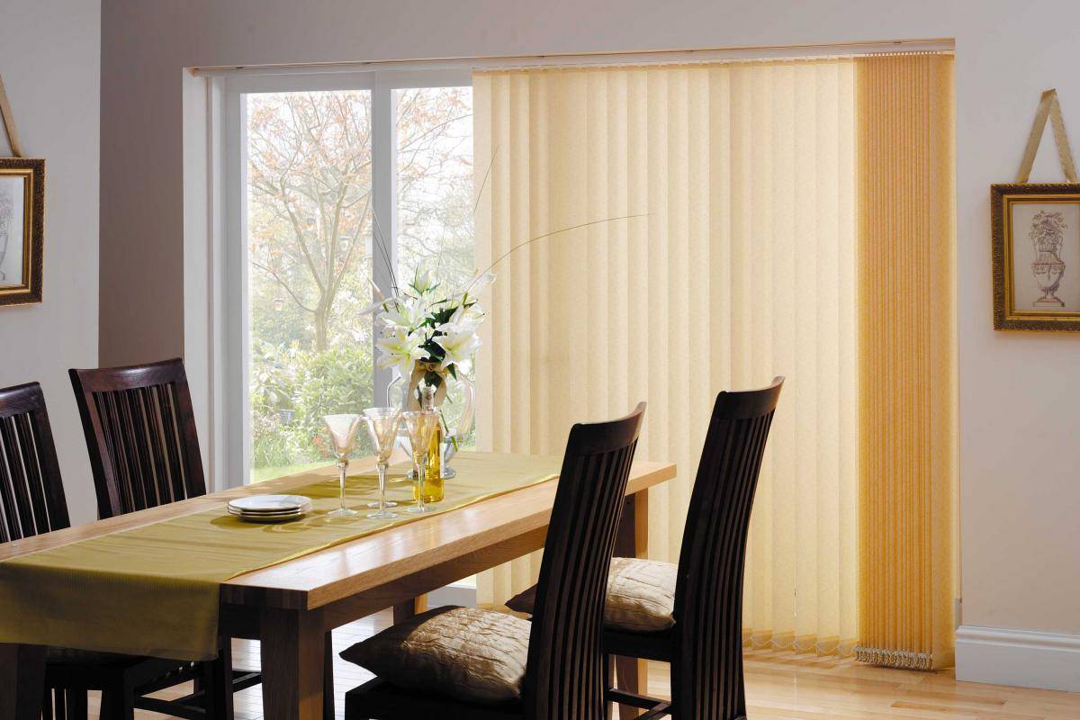 Вертикальные жалюзи являются более современным веянием и носят явный отпечаток классических штор. Они прекрасно сочетаются с большими окнами, эркерами, арками и раздвижными дверями. В этом типе жалюзи ламели располагаются перпендикулярно поверхности пола. Они оснащены комфортным механизмом управления, который поворачивает ламели под любым углом вокруг своей оси. Это обеспечивает возможность создания в комнате различной степени освещённости. Раздвигаются вертикальные жалюзи при помощи шнура, наподобие штор. Материалы для вертикальных жалюзи в большинстве случаев пропитываются антистатическими и пылеотталкивающими растворами. Это препятствует накоплению на них пыли. Свёрнутые в рулон, ламели жалюзи вертикального вида очень удобно стирать в «стиралке».