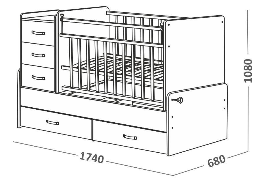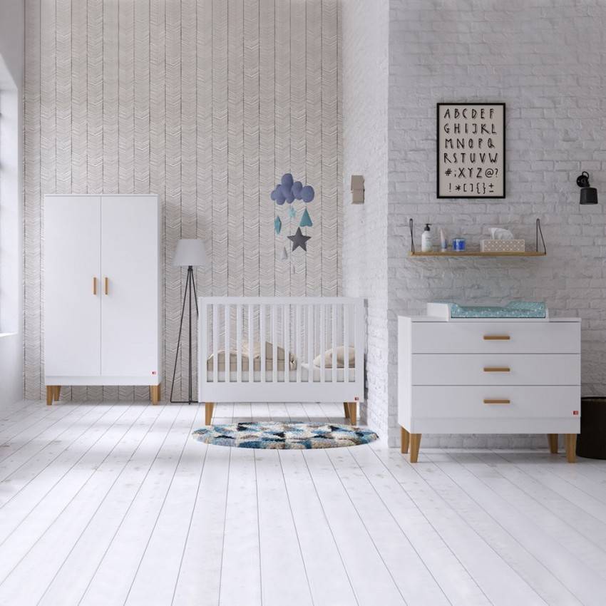 - Детский набор мебели для малышей от 0 до 3 лет. Необходимые в этом возрасте предметы интерьера: кроватка, столик и стул, комод. Чтобы малыш чувствовал себя комфортно во время сна, спальное детское место лучше выбирать небольшое. Стандартные кроватки делают размером 120 на 60 см. Высота первого стола для занятий не должна превышать 40 см, а стула 20 см. Комод в детской комнате малышей может быть взрослых размеров, поскольку складывать и доставать вещи будут родители.