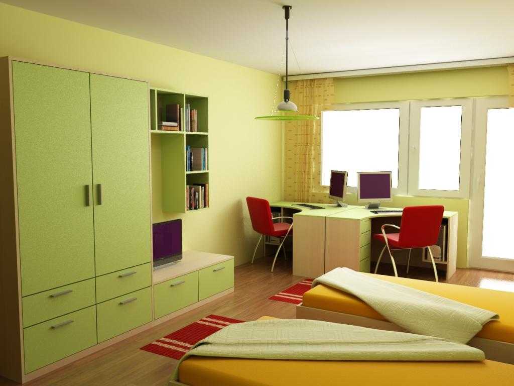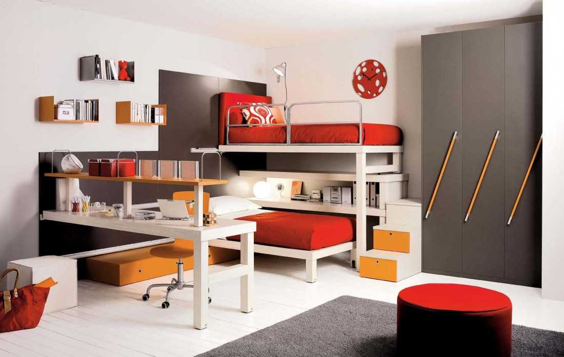 Главной задачей родителей становится установка одной или нескольких кроватей, удобного письменного стола и вместительной системы хранения.