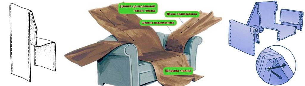 Этот раздел содержит пошаговую инструкцию, как сшить чехол на кресло своими руками. Полезна она будет как новичкам, так и опытным рукодельницам. Мебель может иметь разную конфигурацию, поэтому для пошива накидки в каждом индивидуальном случае нужно снимать мерки всех ее элементов. Также требуются выкройки для пошива чехла на кресло. Их рисует сама мастерица в соответствии с полученными замерами.