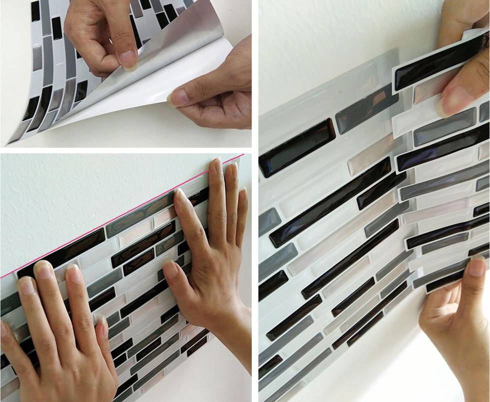 Стикер, который закрывает только часть кафельной плитки, снимают с подложки целиком, прикладывают на нужное место и разглаживают от центра к краям.