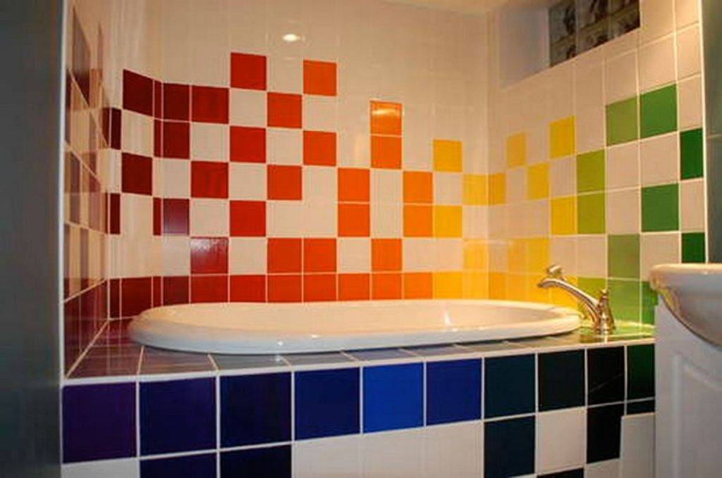 Еще один интересный способ оформления кафеля в ванной или на кухне – нанесение краски. Лучше всего с этой целью использовать водостойкие акриловые составы, которые защитят кафельную плитку от воздействия воды.