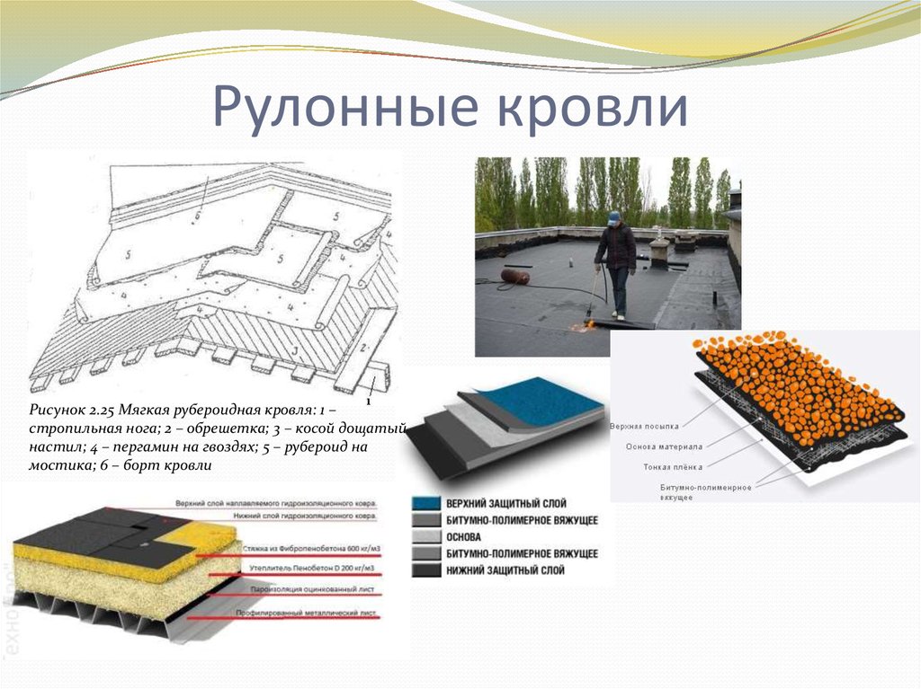Рулонный кровельный материал для крыши получает свойства в зависимости от типа базиса, используемого при выпуске.