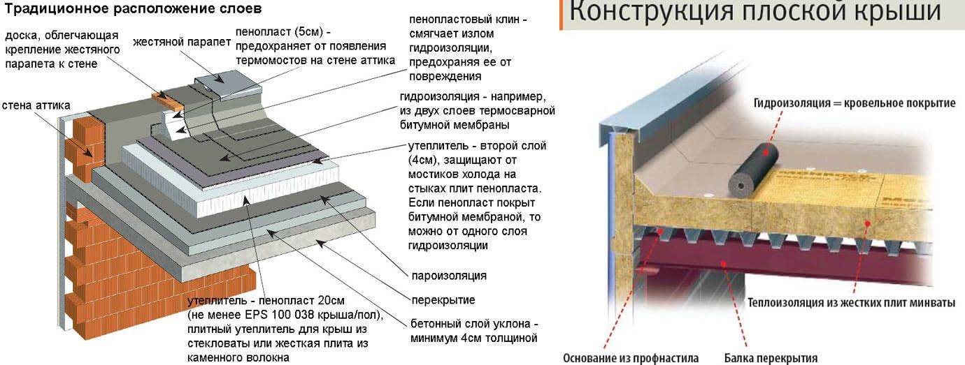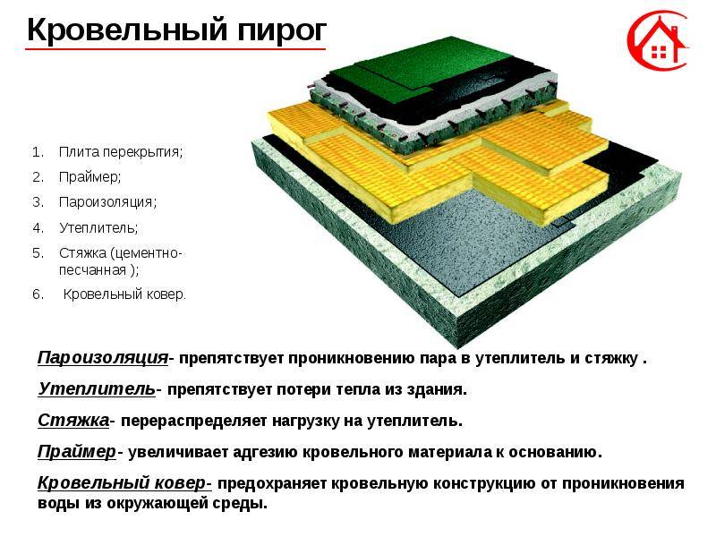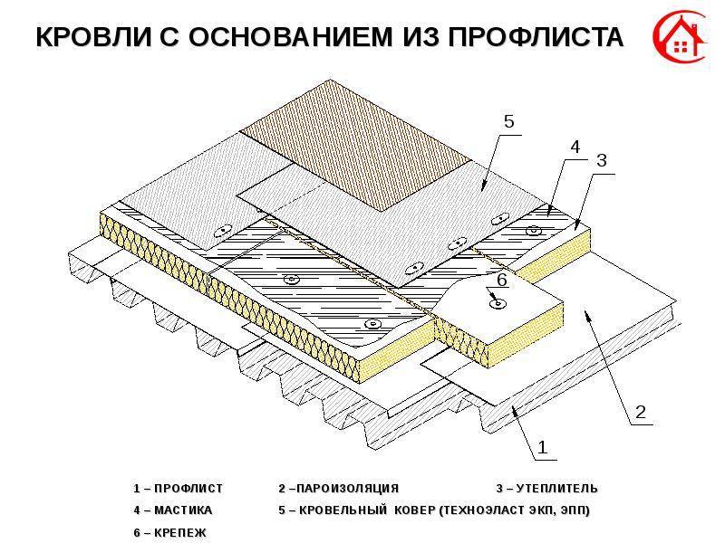 - Основа крыши. Как правило, это железобетонная плита покрытия, но не обязательно. В качестве основы может применяться профилированный лист на промышленных зданиях.