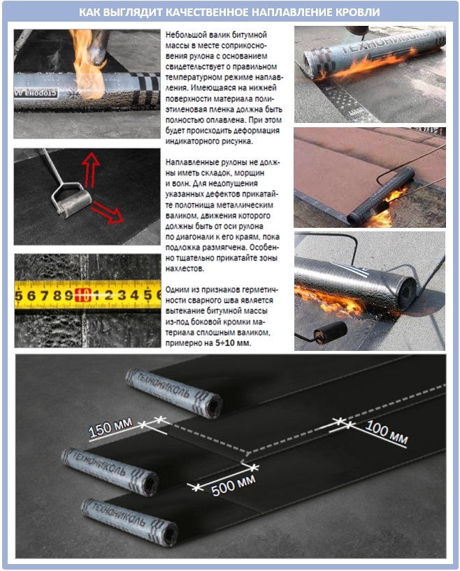 На срок службы наплавляемой кровли значительное влияние имеет как качество применяемых материалов, так и технология их монтажа, которую нельзя нарушать.