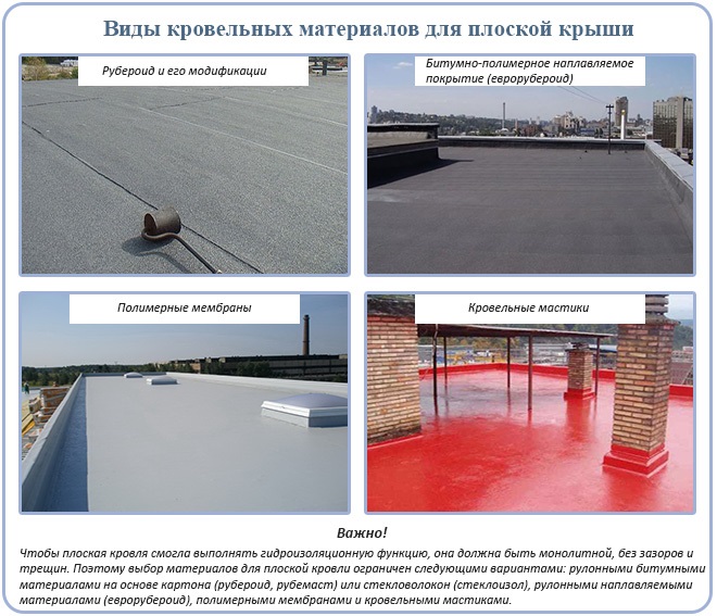 Материалы для кровли плоской крыши нельзя выбирать по принципу «актуальности в новом сезоне». Всяческие модные ондулины и гибкие черепицы не подходят. И вот почему: несмотря на их декоративность и бесспорно хорошие показатели при работе на скатных кровлях, они не способны сформировать сплошной влагоустойчивый ковер. А такой и должна быть плоская кровля: абсолютно герметичной, с минимумом швов – для обеспечения невозможности просачивания влаги под слои кровельного пирога.