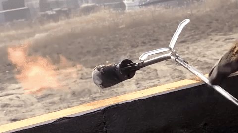Наплавляемая кровля надежно крепится к основанию за счет расплавления нижнего битумного слоя рулонного материала и нагрева праймера. Горелка для наплавляемой кровли должна располагаться таким образом, чтобы пламя разогревало нижнюю часть рулона и основание крыши. Такой нагрев позволяет создать своеобразный наплыв из выступившего битума – он способствует сцеплению мембраны с основанием по мере раскатки рулона.