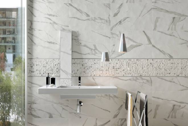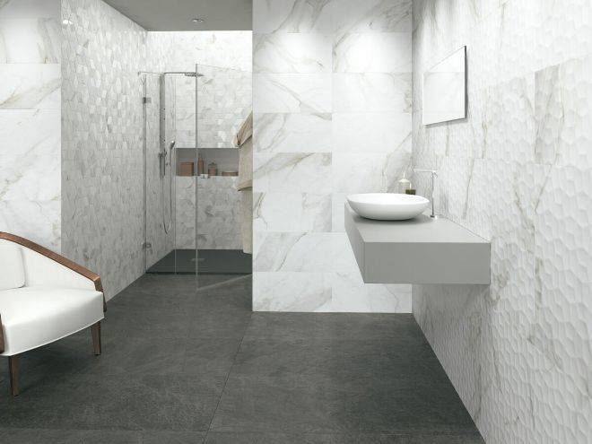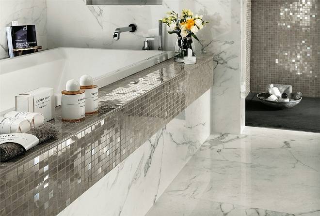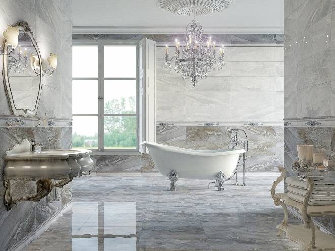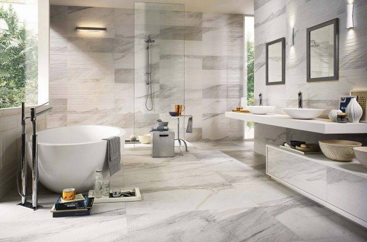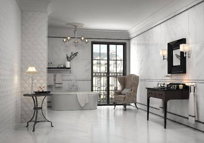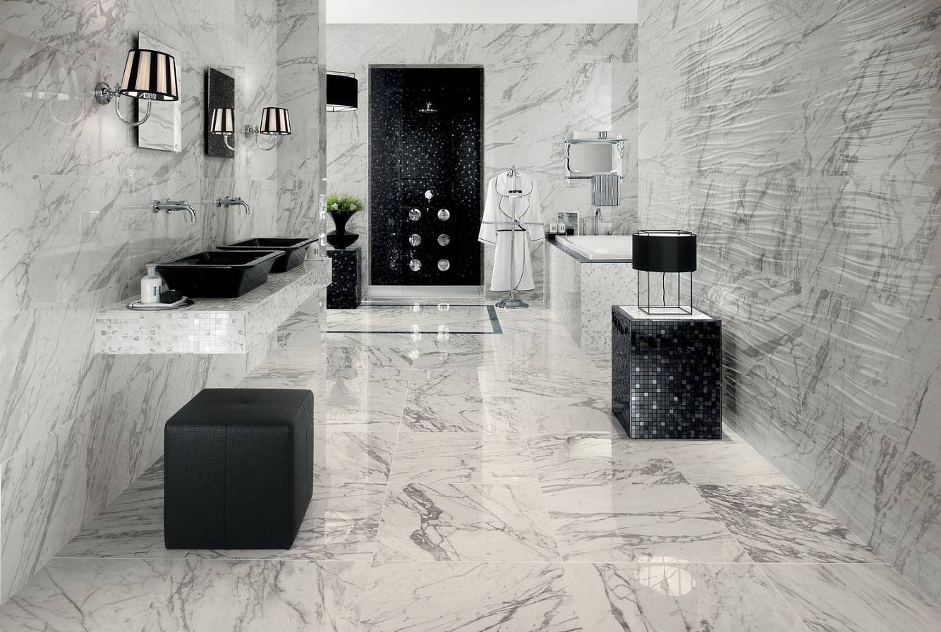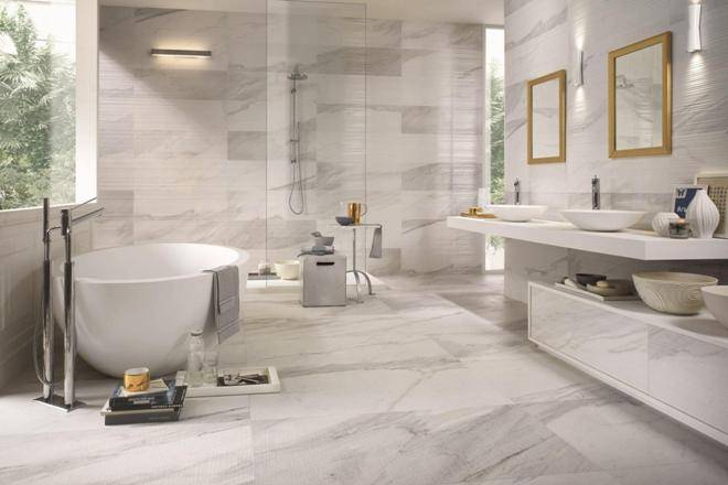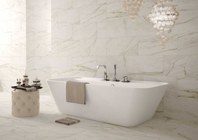 Типы плитки для ванной под мрамор