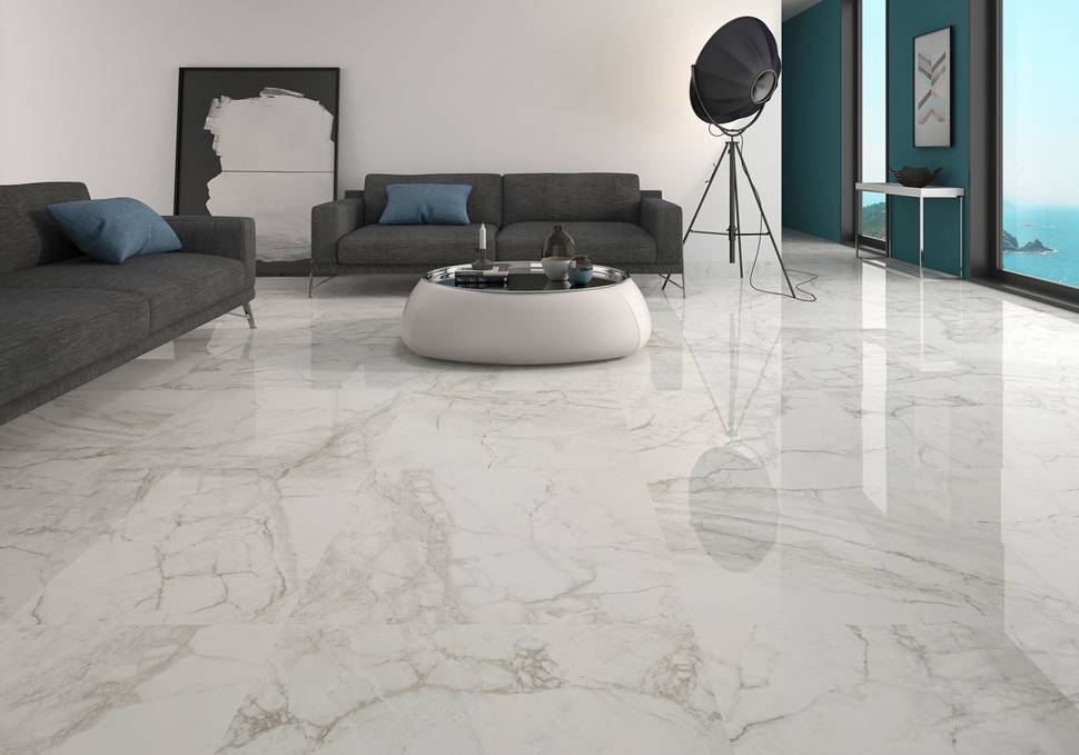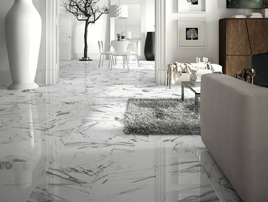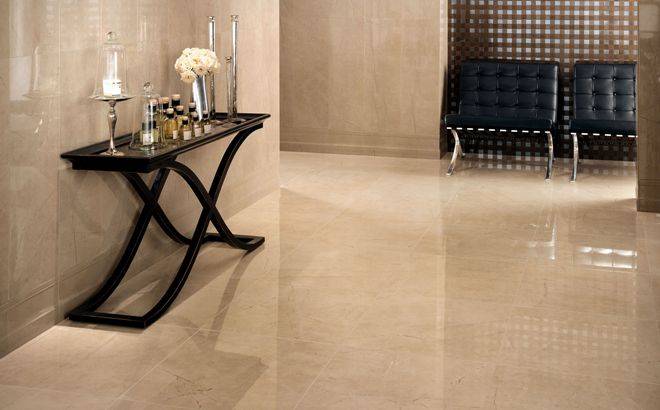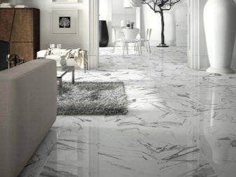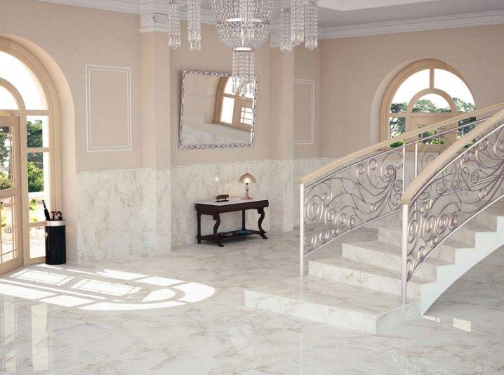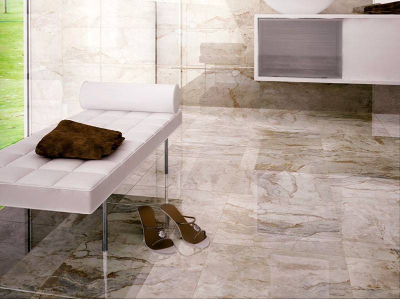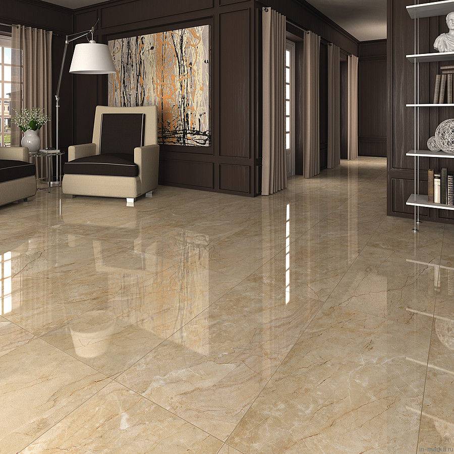 Мраморную напольную плитку производят, в основном, из керамики. Именно этот материал способен наиболее точно передать структуру природного камня. Кроме того, он полностью соответствует всем перечисленным выше требованиям.