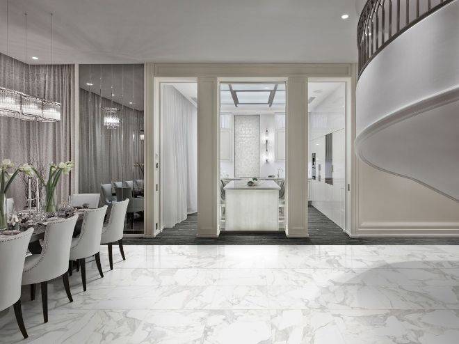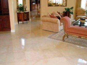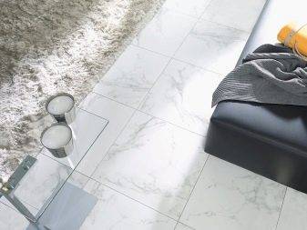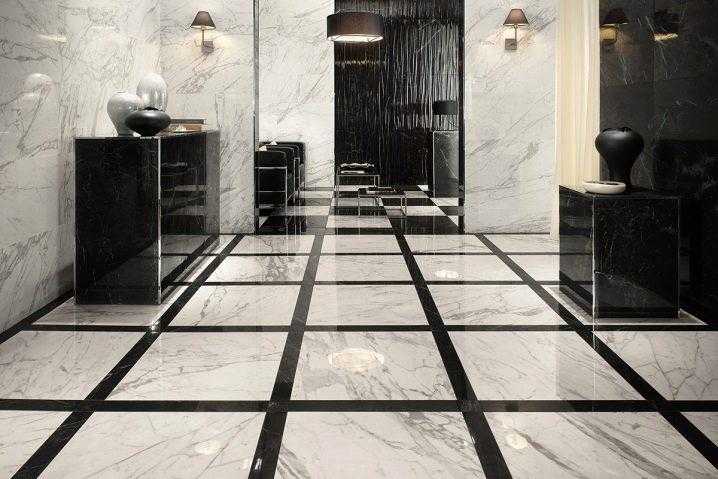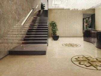 Вне зависимости от модификации мраморной плитки она может применяться в качестве напольного покрытия. Особенно эффектно в любом интерьере смотрится сочетание плиток, разных по цвету и фактуре.