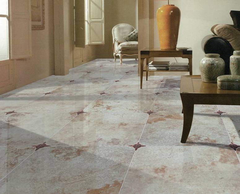 Во многих интерьерах интересно будет смотреться мозаика из плитки. Сейчас производят плитку разной формы и размера для создания неповторимых узоров. Можно выложить расписные квадраты и прямоугольники разных цветов мозаикой по кругу, сделать орнамент по периметру комнаты или оформить таким способом весь пол. Чаще используют растительные орнаменты, характерные для традиционных интерьеров, однако интересно будет смотреться и абстрактный узор.