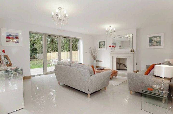 - Стиль. Независимо от стилевой направленности, обстановки и цветовой гаммы, помещение с белым напольным покрытием всегда выглядит изысканным и стильным.