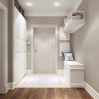 Чтобы не было видно царапин от подошв, рекомендуется использование матовой плитки. Если прихожая небольшая, предпочтительнее использовать для отделки светлые оттенки плитки и подобрать ламинат, близкий по цвету для создания более гармоничного помещения.