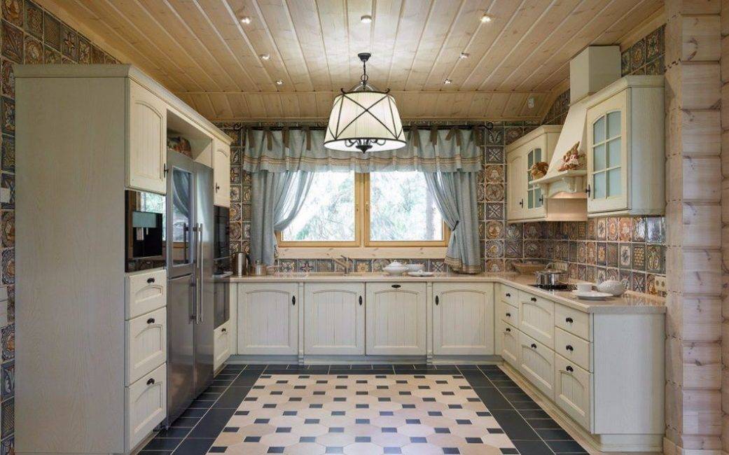 Когда стиль квартиры требует дерево на кухне, а практическая сторона материала под сомнением, его можно заменить на керамогранит под дерево. Он представлен в большом разнообразии, что всегда найдется что-то подходящее. Или использовать метлахскую плитку. Она теплая, придает старины, задает масштаб помещению, добавляет ярких красок.