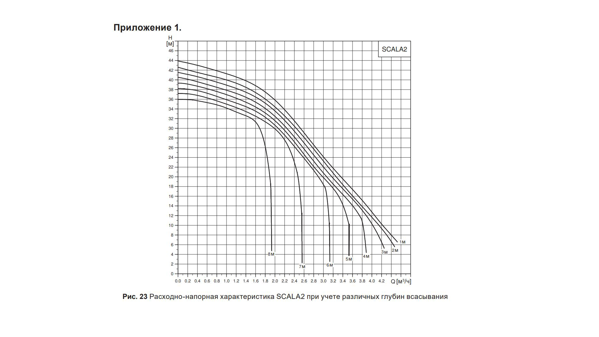 Вот одна из страниц руководства станции. На графике показана зависимость производительности от глубины всасывания.