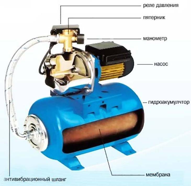 Встроенные в автоматический агрегат гидроаккумулятор, манометры и реле давления служат для отслеживания отрицательных изменений в системе водоснабжения, чтобы вовремя на них отреагировать.