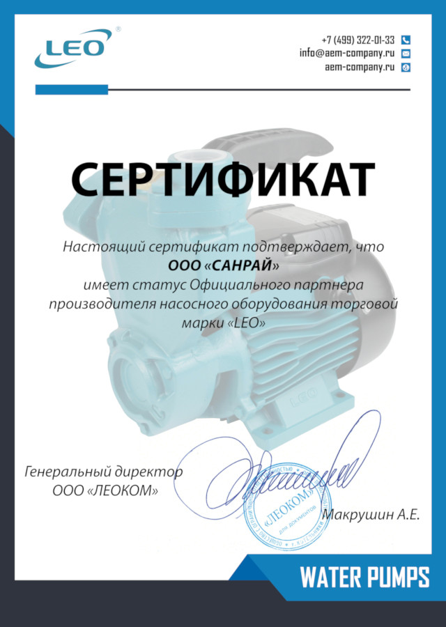 Компания-производитель насосного оборудования LEO и магазин сантехники Санрай73 совместно работают по расширению ассортимента в Ульяновской области и России. В 2019 году мы заключили дилерское соглашение по Ульяновской области. Теперь в интернет магазине сантехники Санрай73 появилась возможность заказать и приобрести лучшие товары брендов LEO и Vodotok по актуальным ценам.