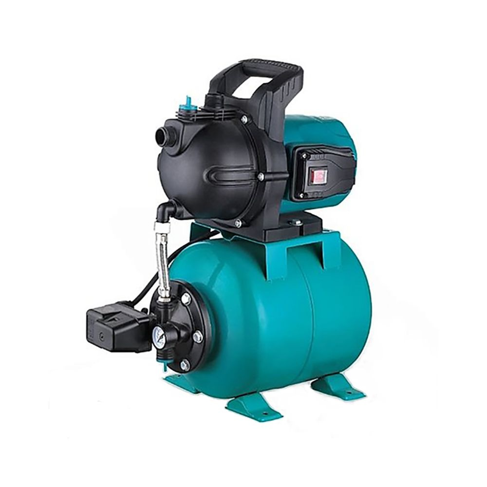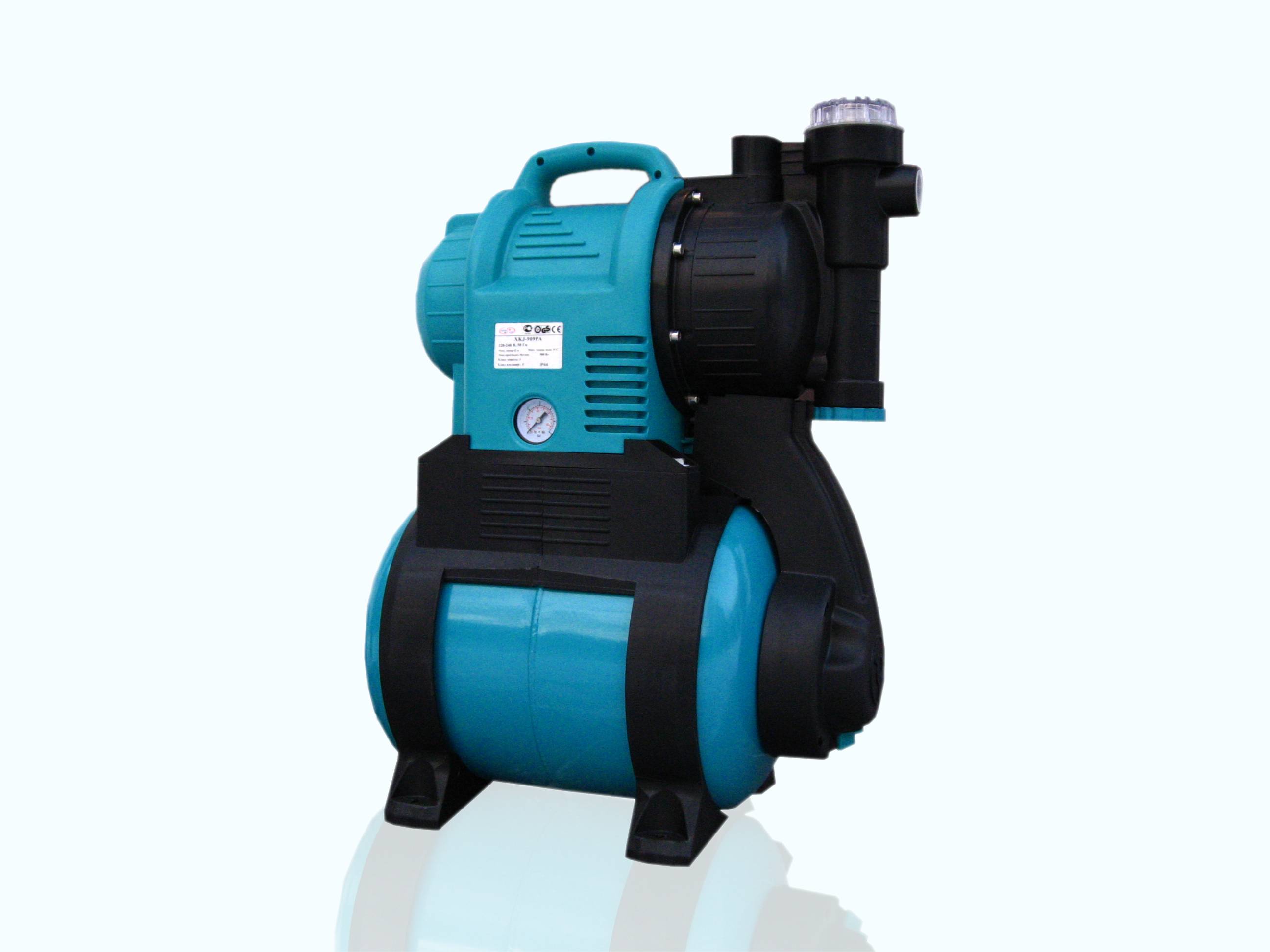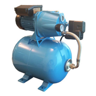 Отличная и недорогая насосная станция. Хорошо поднимает воду с глубины до 9 м. Максимальный напор воды, на который может поднять эта машинка, составляет целых 50 м. Наличие гидроаккумулятора в 8 л дает возможность бесперебойно обеспечивать жидкостью дом и приусадебный участок.