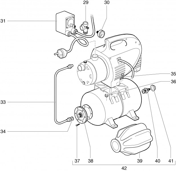 При падении давления в системе пружины отбрасывают клеммы контактора, и насос начинает свою работу, когда давление в трубопроводе поднимается до заданного уровня, этим давлением отбрасывается контакторная пластина и насос прекращает накачивать резервуар, так как подача питания прекращается.