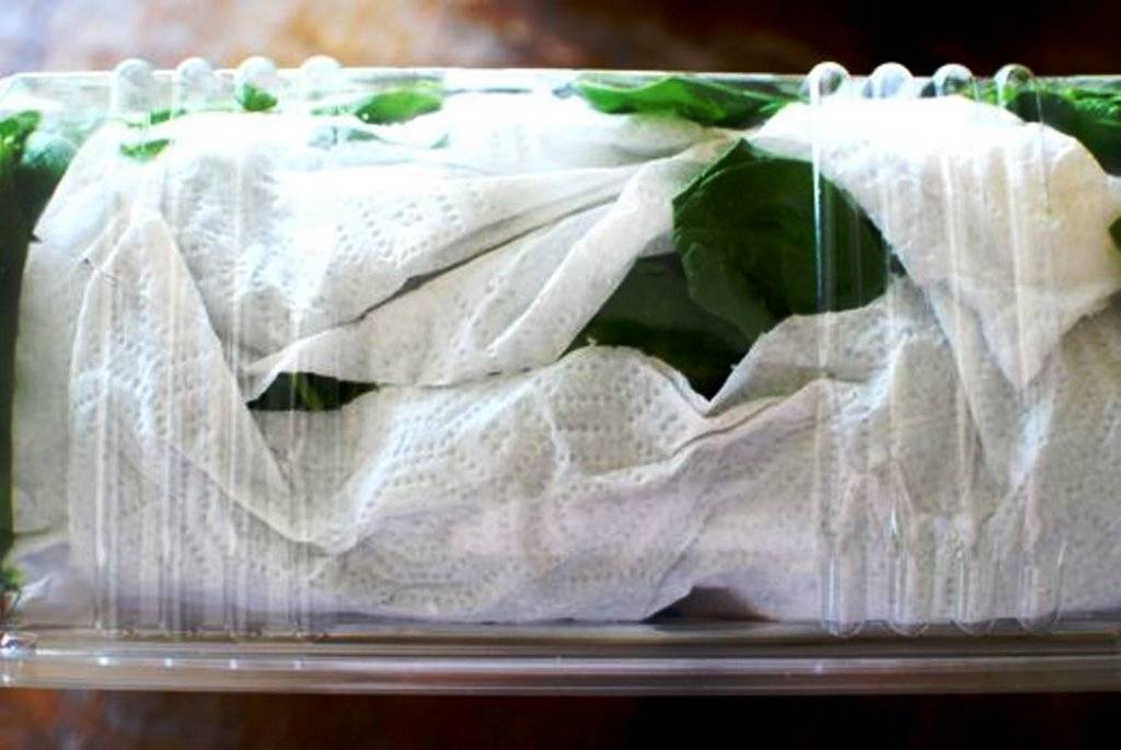Чтобы увеличить срок хранения продуктов в холодильнике – овощи, фрукты, зелень, рыба, мясо – заверните их в бумажное полотенце. Бумага впитает лишнюю влагу и даст доступ воздуху и выходу углекислого газа. Чтобы зелень имела свежий вид можно завернуть ее в слегка влажное бумажное полотенце.