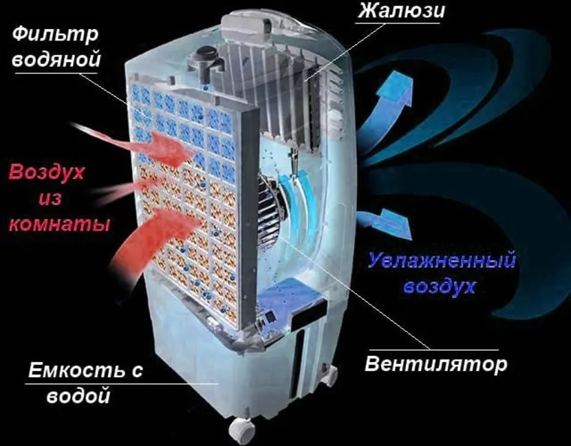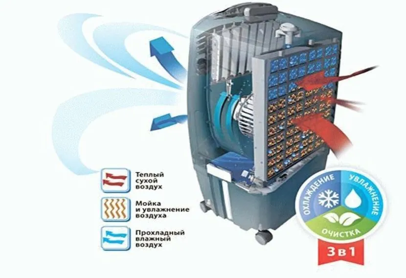 Охлаждение воздуха с помощью воды в мобильном кондиционере Источник klimat-vdome.ru