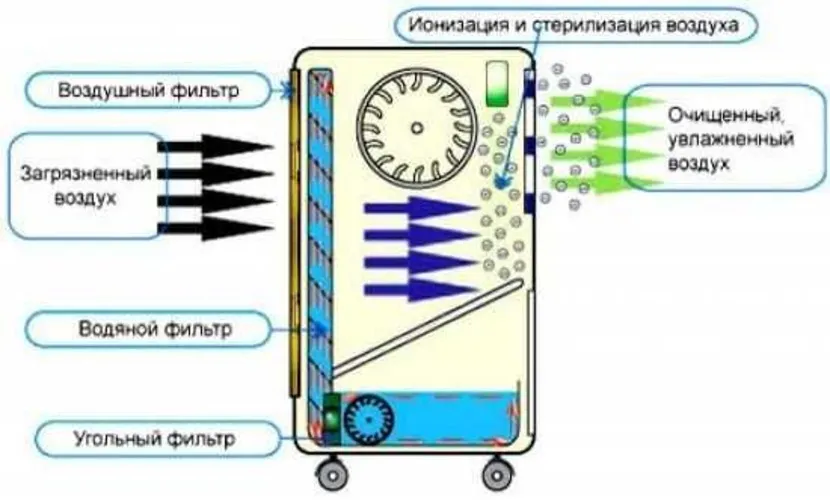 - ионизаторами — предназначенными для уничтожения бактерий, очищения воздуха от запахов, других загрязнений;