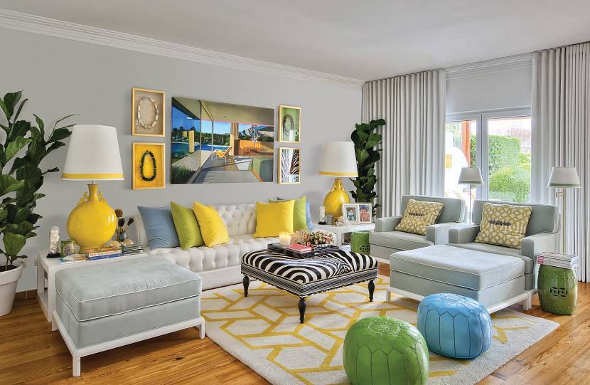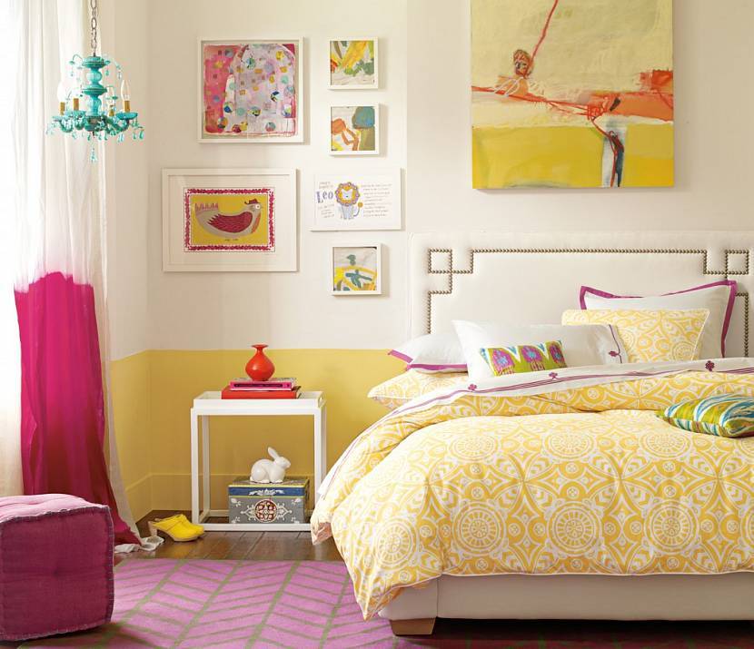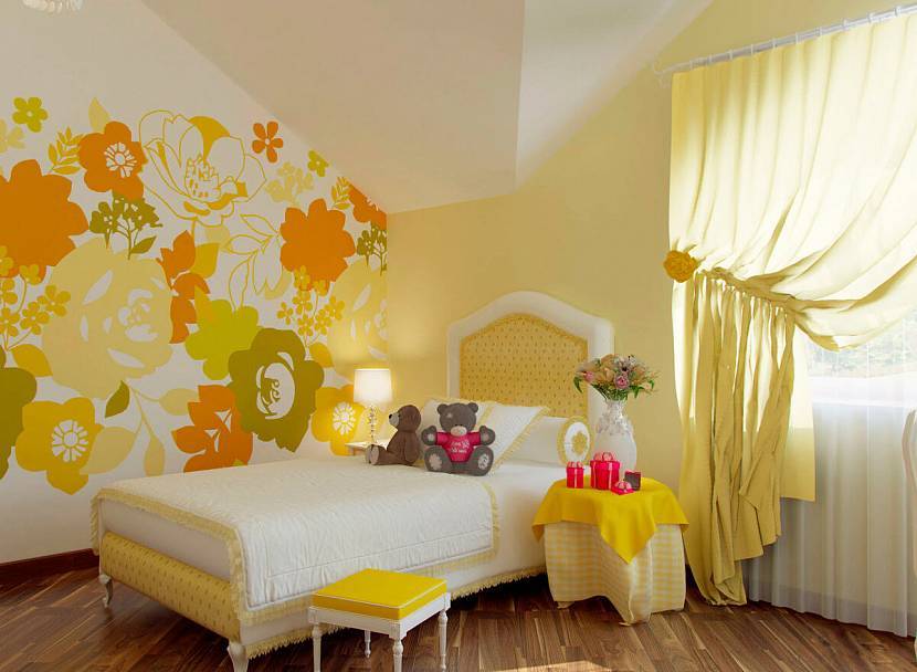 Не переборщите с оформлением. Достаточно двух-трех элементов в комнате желтого цвета на фоне любого другого. Такой подход уместен для оформления интерьера в небольших по площади гостиных, спальнях, детских.