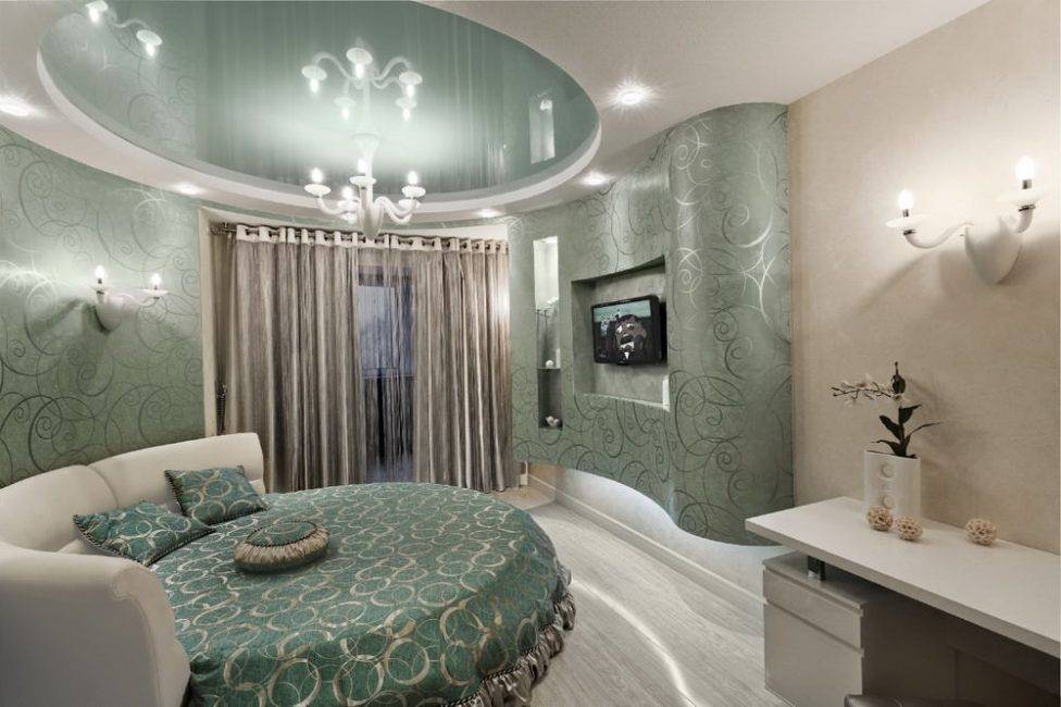 Для спальни хорошо подойдут спокойные нейтральные цвета, такие как синий, голубой, фиолетовый, а также кремовые и светлые оттенки. Можно использовать один, два или много цветов, главное – выбрать их гармоничную комбинацию, которая не будет раздражать и не нарушит сон. Интерьер гостиной хорошо выглядит с многоуровневыми потолками, в которых сочетаются несколько разных оттенков.