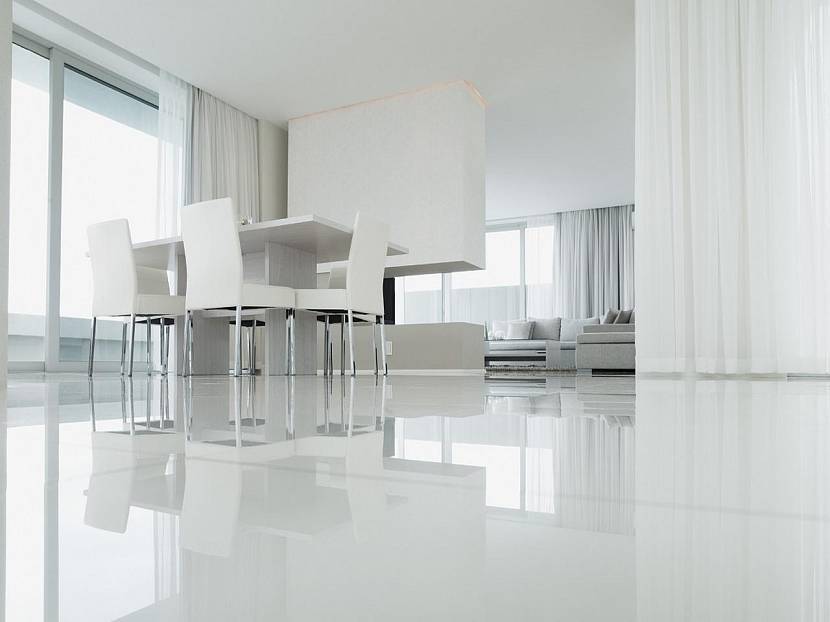 Фактура напоминает матовую, но в ней частично отражается свет, поверхность становится похожей на пластик, с перламутровым блеском. Сатиновая поверхность белого цвета выглядит просто ослепительно.