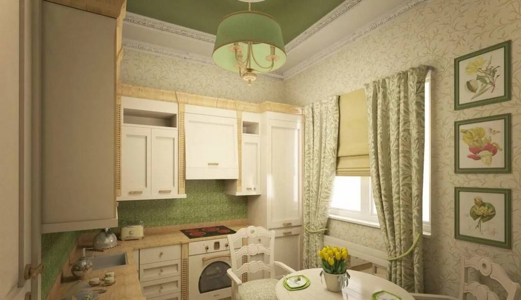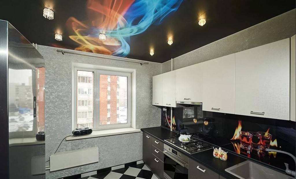 Натяжные потолки на маленькой кухне