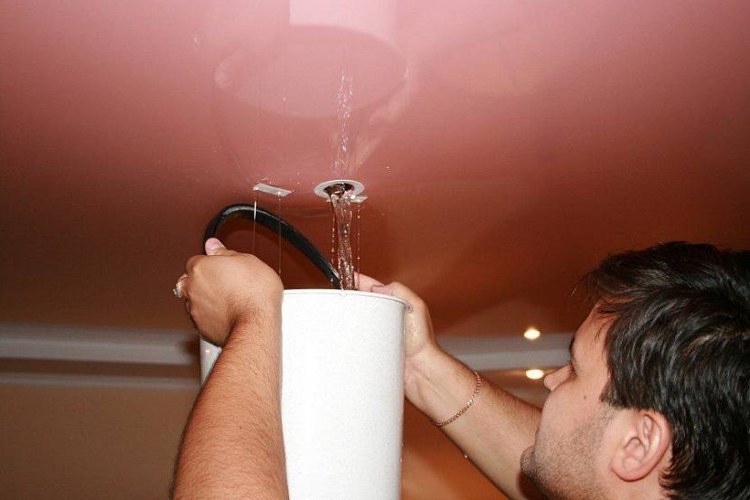 Слив воды с натяжного потолкаИсточник zen.yandex.ru