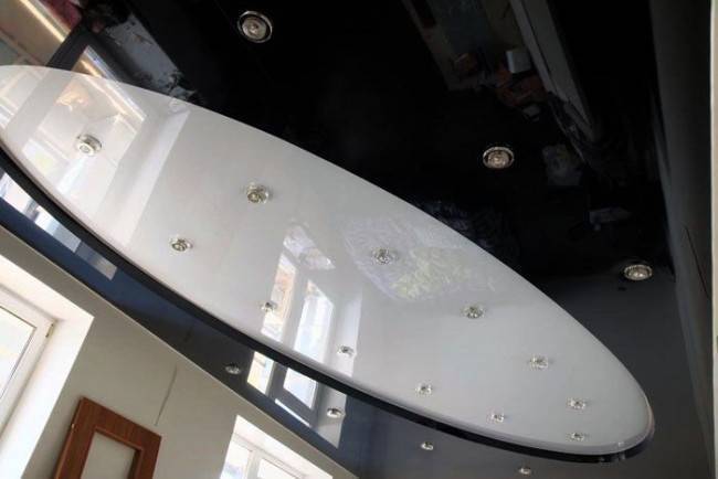 Двухуровневый натяжной потолок смотрится очень эффектно