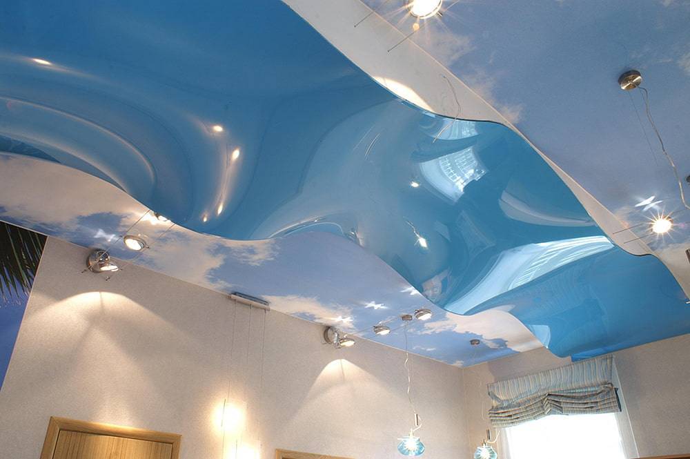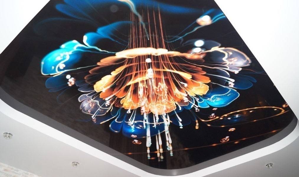 В случае с фотопечатью потолок будет смотреться аккуратно, если изображение не затрагивает линию шва, то есть нанесено на пленку фрагментарно. Это позволит сделать печать на обычном станке, сократив расходы.