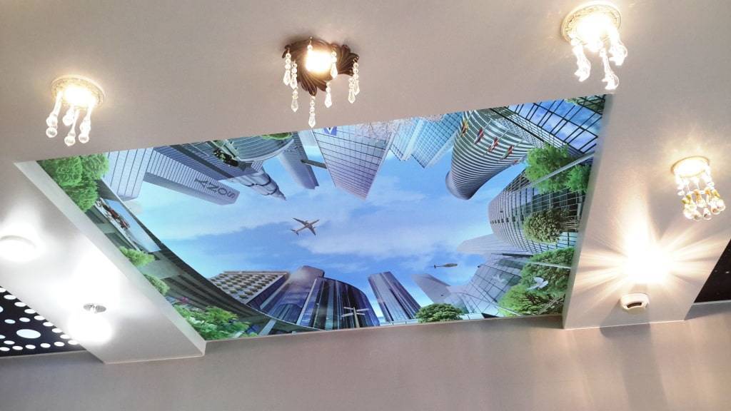 В плане дизайна у потолков с фотопечатью классическая классификация. Бывают: