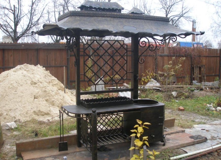 Вначале следует обратить внимание на сам мангал под навесом. Существует две разновидности изделий, которые отличаются по месту установки: