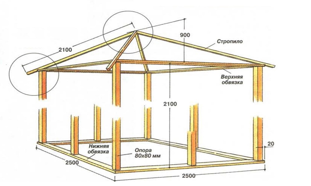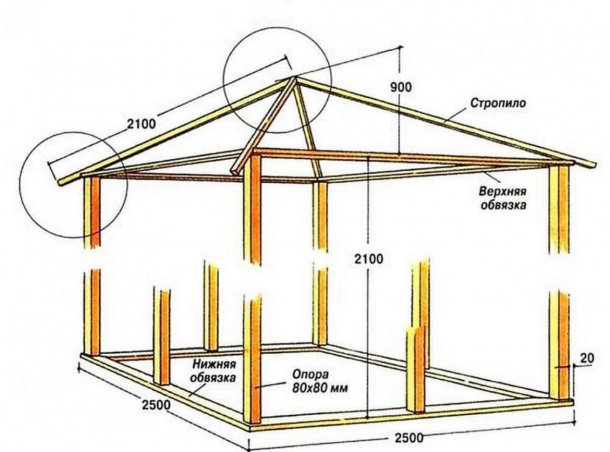 - Треугольные стропила можно применять при сооружении кровли беседки квадратной формы.