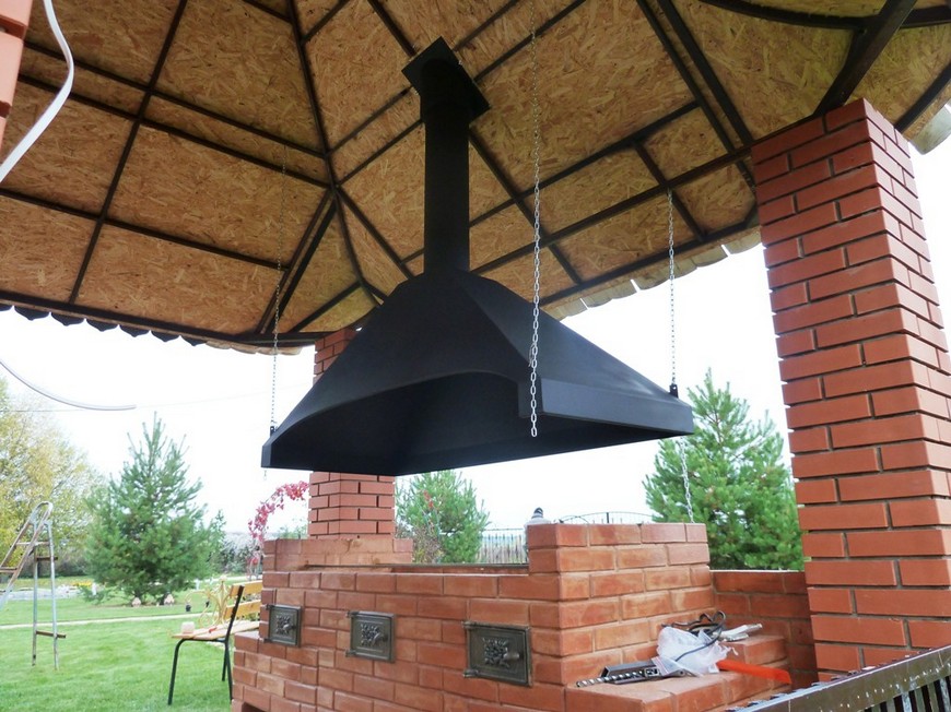 Если предполагается, что конструкция будет находиться в беседке, то нужно сделать дымоход. Для этого нужно знать некоторые особенности самостоятельного изготовления.
