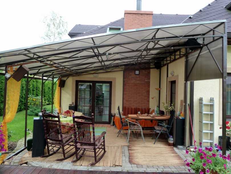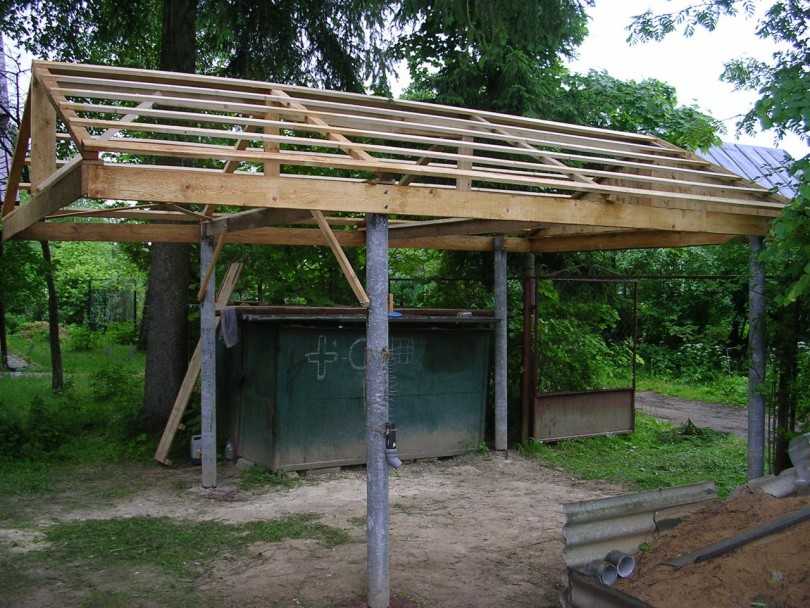 Наиболее ответственная часть навеса — крыша. Она выполняет две функции: