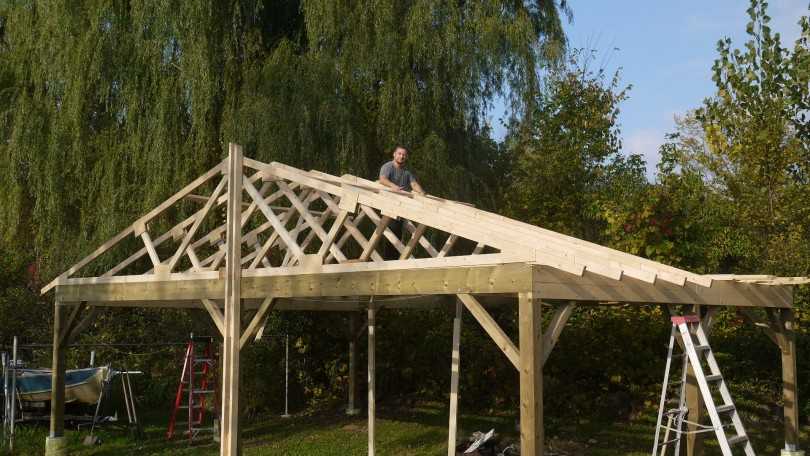 На этом сборка навеса для авто из бруса закончена, как видите, сделать это довольно просто.