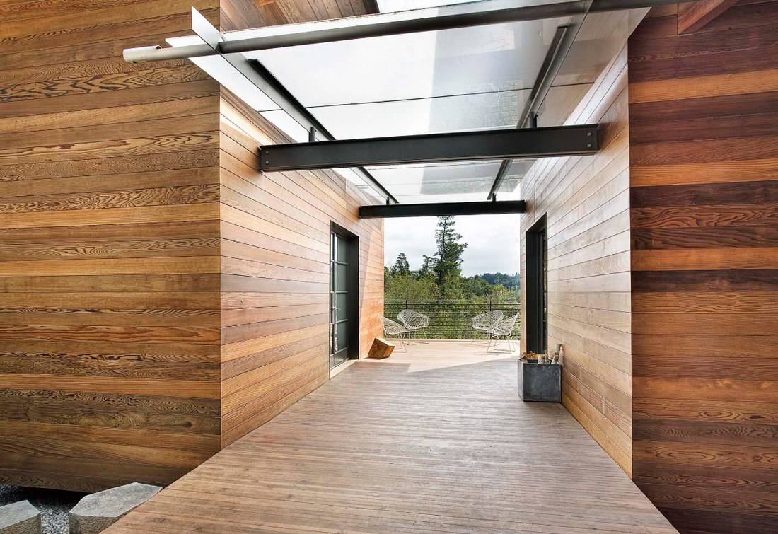 Навесы в виде козырька применяют для укрытия прилегающей территории от плохих погодных условий. Это прекрасный вариант для защиты ступеней и порога от замерзания зимой, что поможет исключить падения и травмы.