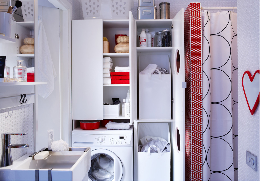 Никакая другая комната так не ассоциируется с чистотой, как ванная. Самый удобный способ — поставить в нише. Если планировка ванной не предусматривает такое удобство, из гипсокартона и плитки или купить шкаф с отделением для стиральной машины. Это пространство можно использовать по полной: установить полки или настенный шкафчик для хранения ванных принадлежностей, полотенец и прочих полезных вещей.