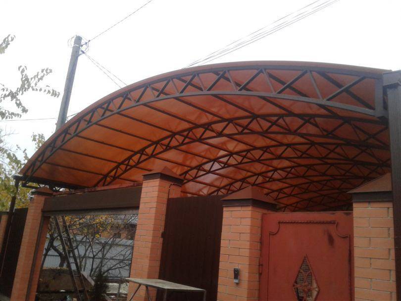 Кровлю можно выбрать любую, но именно поликарбонат позволяет получить не просто прочный верх, но и очень красивый.