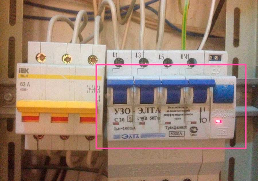 В обычном режиме срабатывание УЗО вызвано пробитием напряжения на кожух электроприемника или попаданием человека под напряжение.