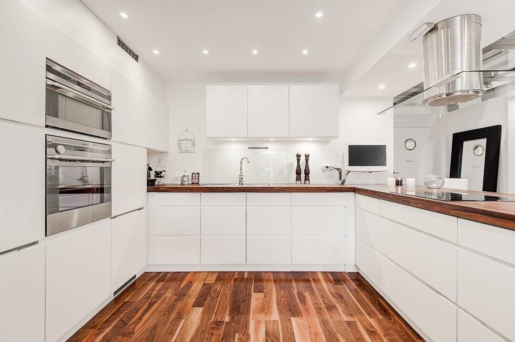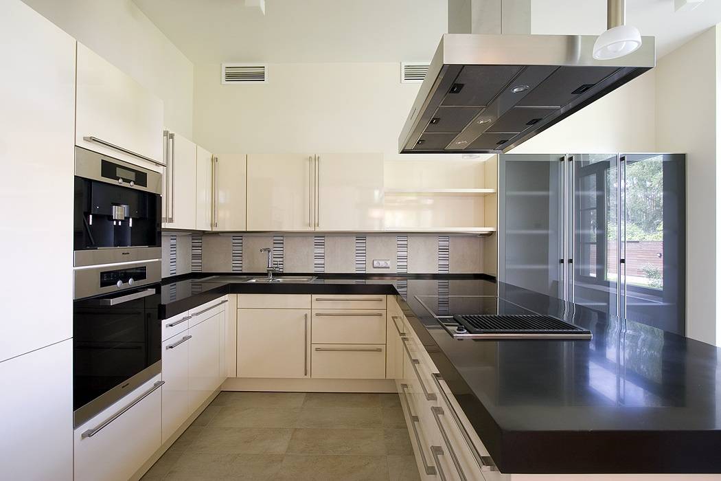 П-образный план — это второй по популярности способ обустроить кухню в современном доме. Кухня такой формы представляет собой не что иное, как параллельные ряды шкафов, соединяющихся перпендикулярно средней полосой, которая обычно короче. Это расположение прекрасно работает не только в больших комнатах, но, вопреки внешнему виду, в малых, казалось бы, очень ограниченных пространствах. Об этом свидетельствуют многочисленные кухонные конструкции и устройства, которые вы найдете в фото-галерее статьи. Рассмотрите, как красивые, просторные кухни в больших домах, так и малые гарнитуры в квартирах по несколько десятков метров. Узнайте о принципах правильного обустройства П-образной кухни.