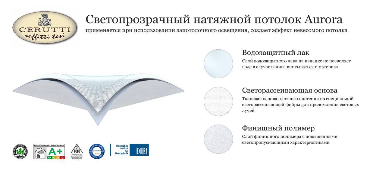Структура и состав светопрозрачных натяжных потолков Черутти Аврора