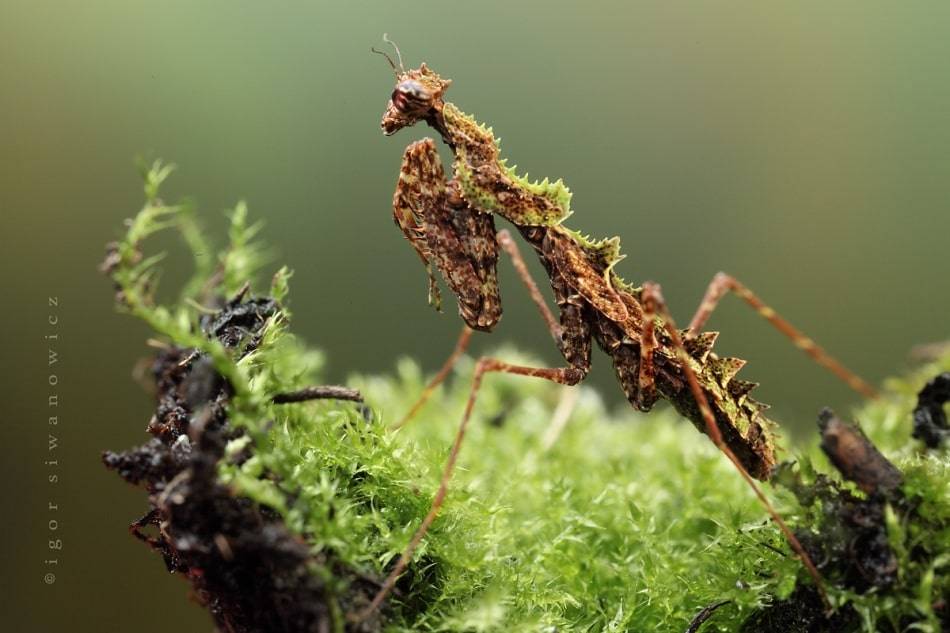 Фото богомола: Pogonogaster tristani — редкий вид богомолов, обычно не показывающихся на глаза человеку. Их тело покрыто волосками и колючками, напоминающими мох, чтобы сливаться с ним, сидя в засаде.