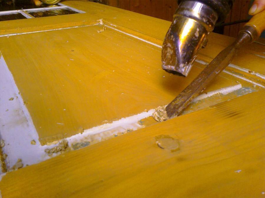 - Когда покрытие начнет вздуваться и отставать от основания, краска соскабливается при помощи шпателя.