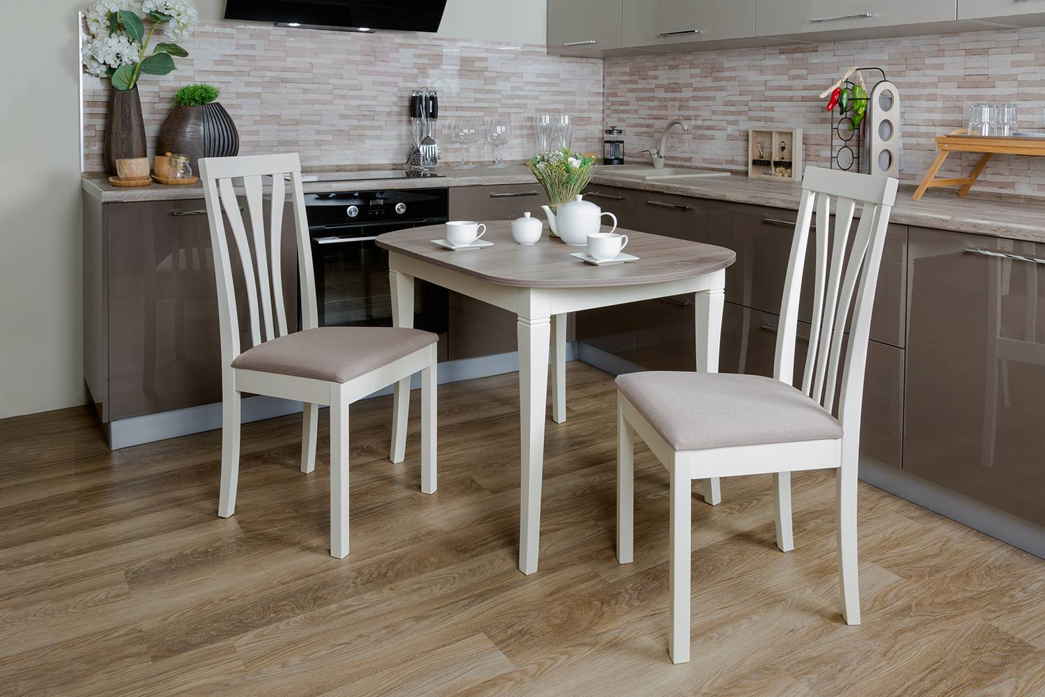 Подбирая стол со стульями, нужно отталкиваться от размеров кухни, учитывать, сколько человек предполагается собирать за завтраками или обедами. В учет также берутся выбранный стиль, фактура, цвет, материал и материальные возможности хозяев квартиры. Обеденная группа обязательно должна гармонировать с кухонным гарнитуром, сочетаться с ним, а также с полом и стенами в тонах и фактуре.