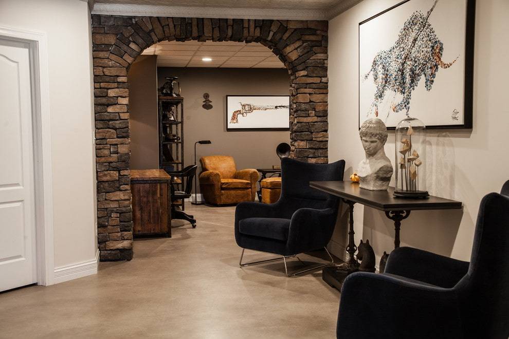 На фото каменная кладка в оформлении дверного проема без дверей в интерьере холла.