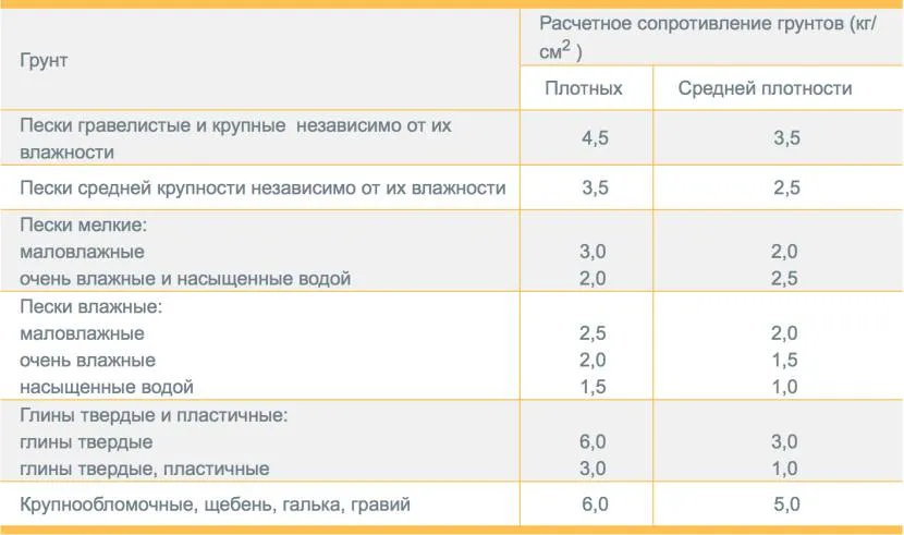 Расчетное сопротивление основных видов грунта Источник tildacdn.com